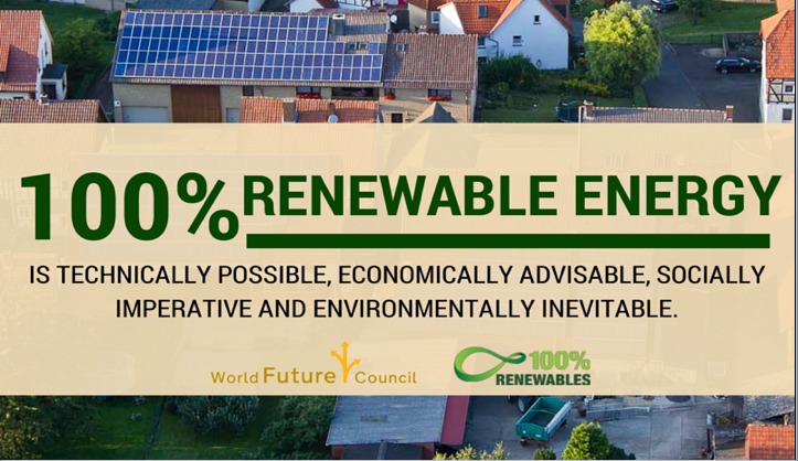 The future economy must cease its dependence on fossil fuels, replacing it with 100% renewable energy for all purposes—electricity, transport and heat.