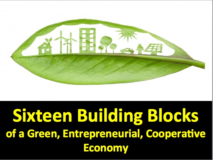 This paper addresses only local, regional and state economies, for which I have identified an incomplete list of sixteen building blocks of change, some of which can be initiated independent of government, some of which require government leadership and action.
